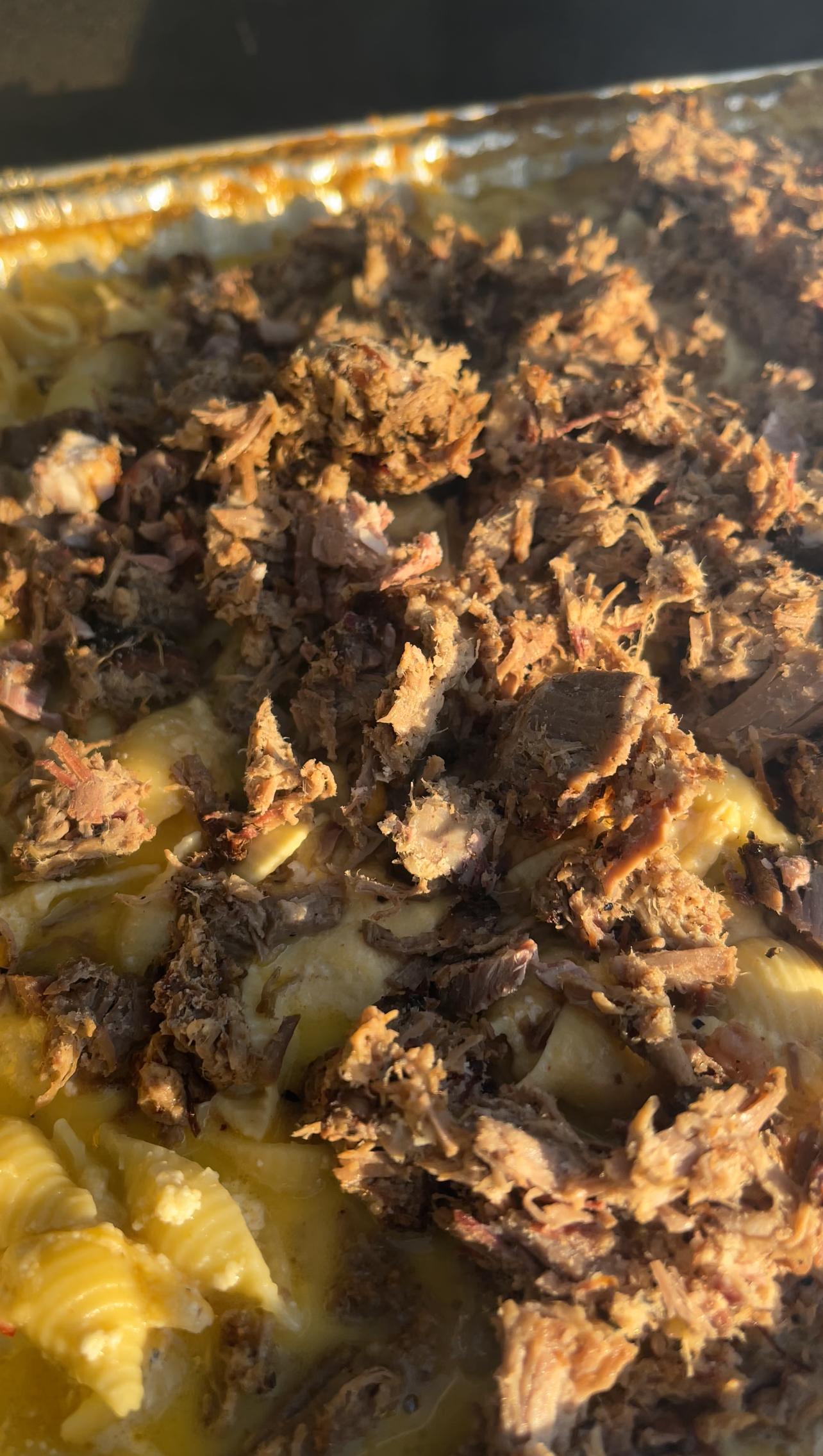 4️⃣ If the Mac n Cheese consistency is what you like, add 2 cups of chopped brisket, mix and close for 15 minutes then top with cheese and cook for another 10 minutes.